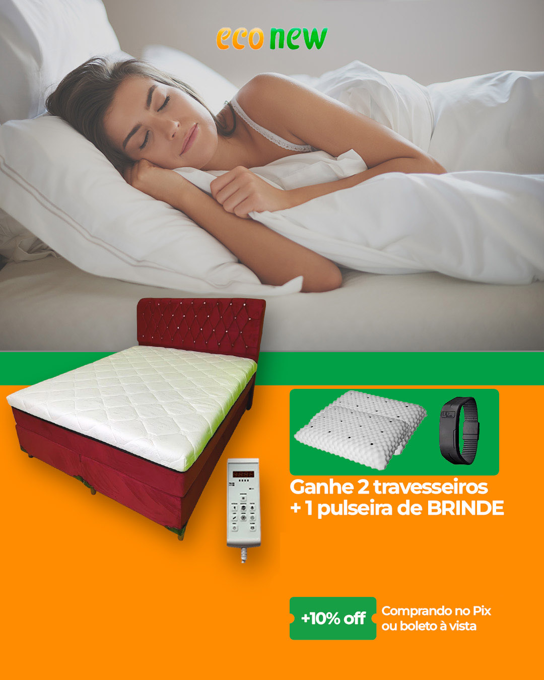 A linha Diamond Relax, da Eco New, oferece colchões com pastilhas de Magnetismo, Turmalina Negra e Infravermelho, que restauram o equilíbrio energético e aliviam áreas afetadas. Com infinitos tipos de massagens corporais, proporciona um relaxamento profundo durante o repouso e possui 31cm de espessura.